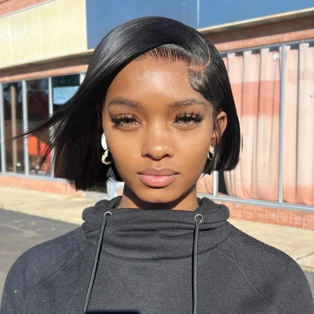 Vietnamese Bone Straight Bob Human Hair Short Wig Hair 13x4 Lace Frontal Bob Wig 100% Human Hair Preplucked Wig 12 14 inch 200%