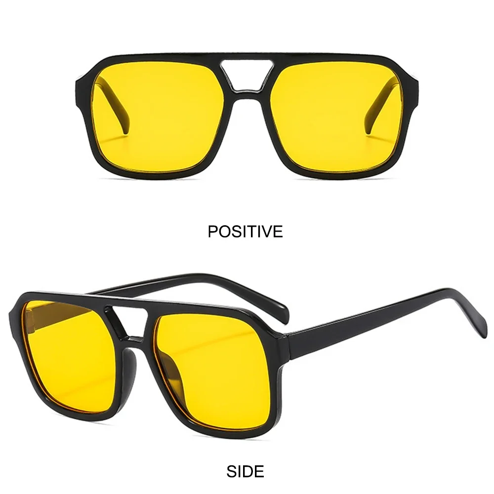 Vintage Double Bridge Yellow Sunglasses Women Oversized Square Frame Luxury Shades Sun Glasses Female Pilot Eyewear