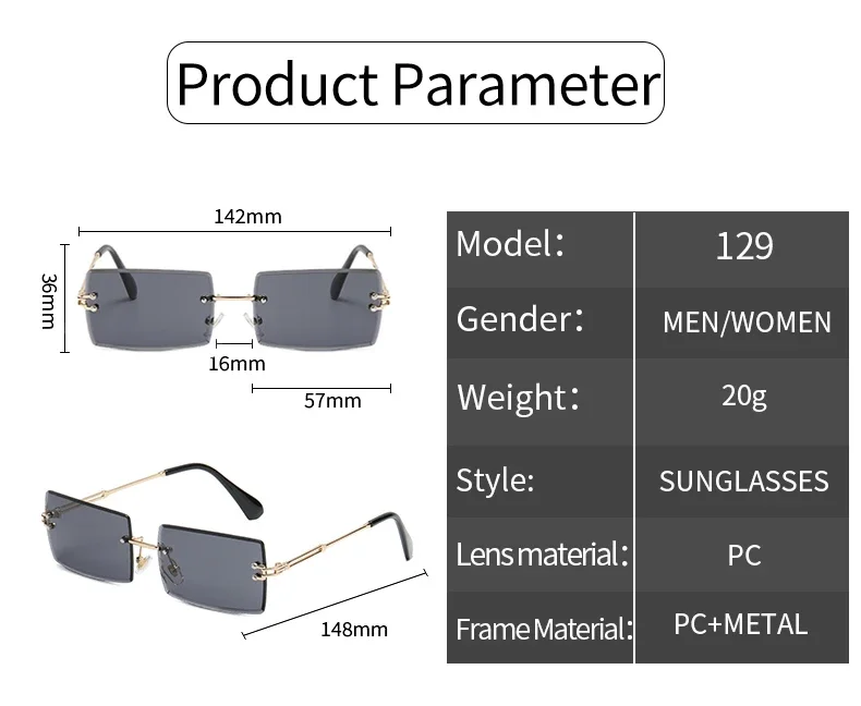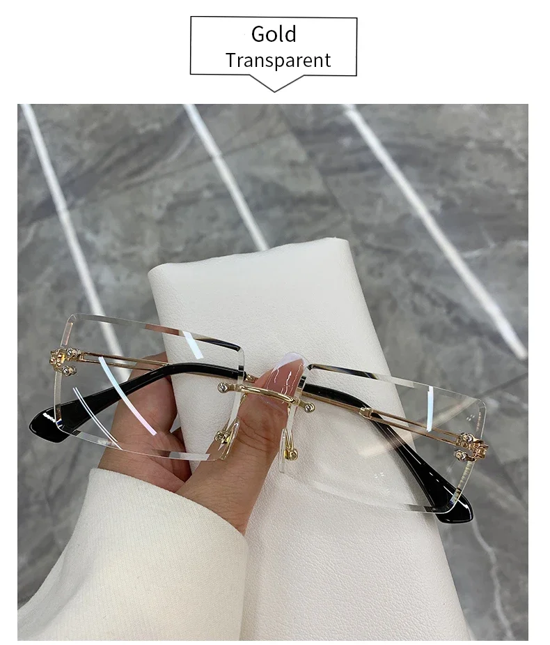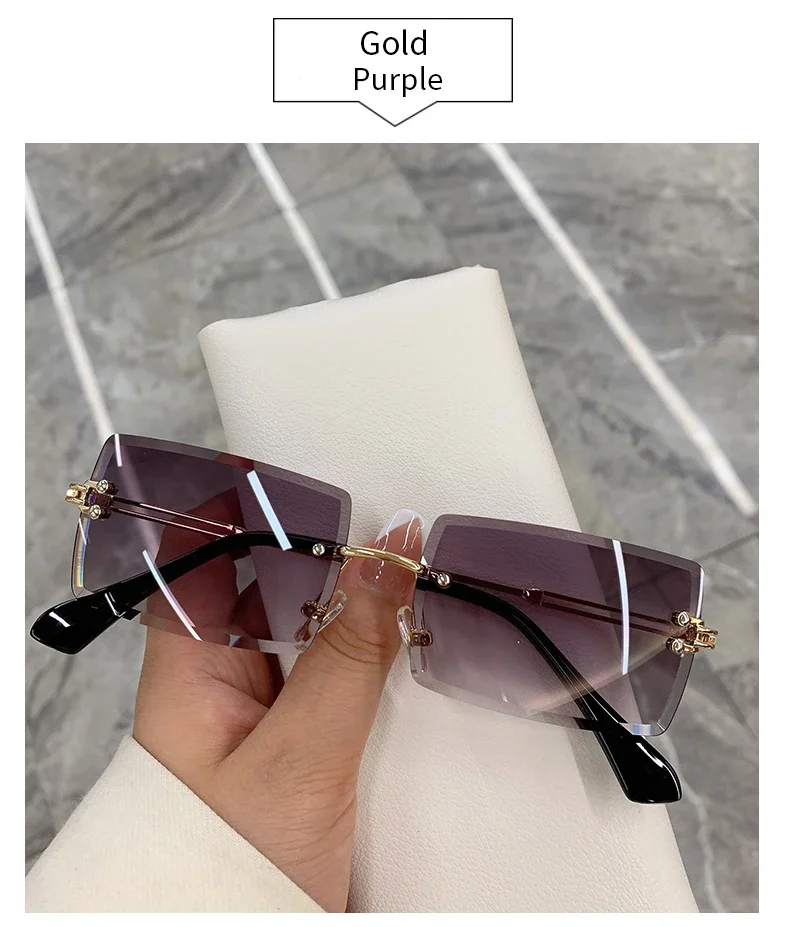 Vintage Fashion Rimless Sunglasses for Women Frameless Rectangle Shades Gradient UV400 Summer Traveling Sun Glasses for Womenn