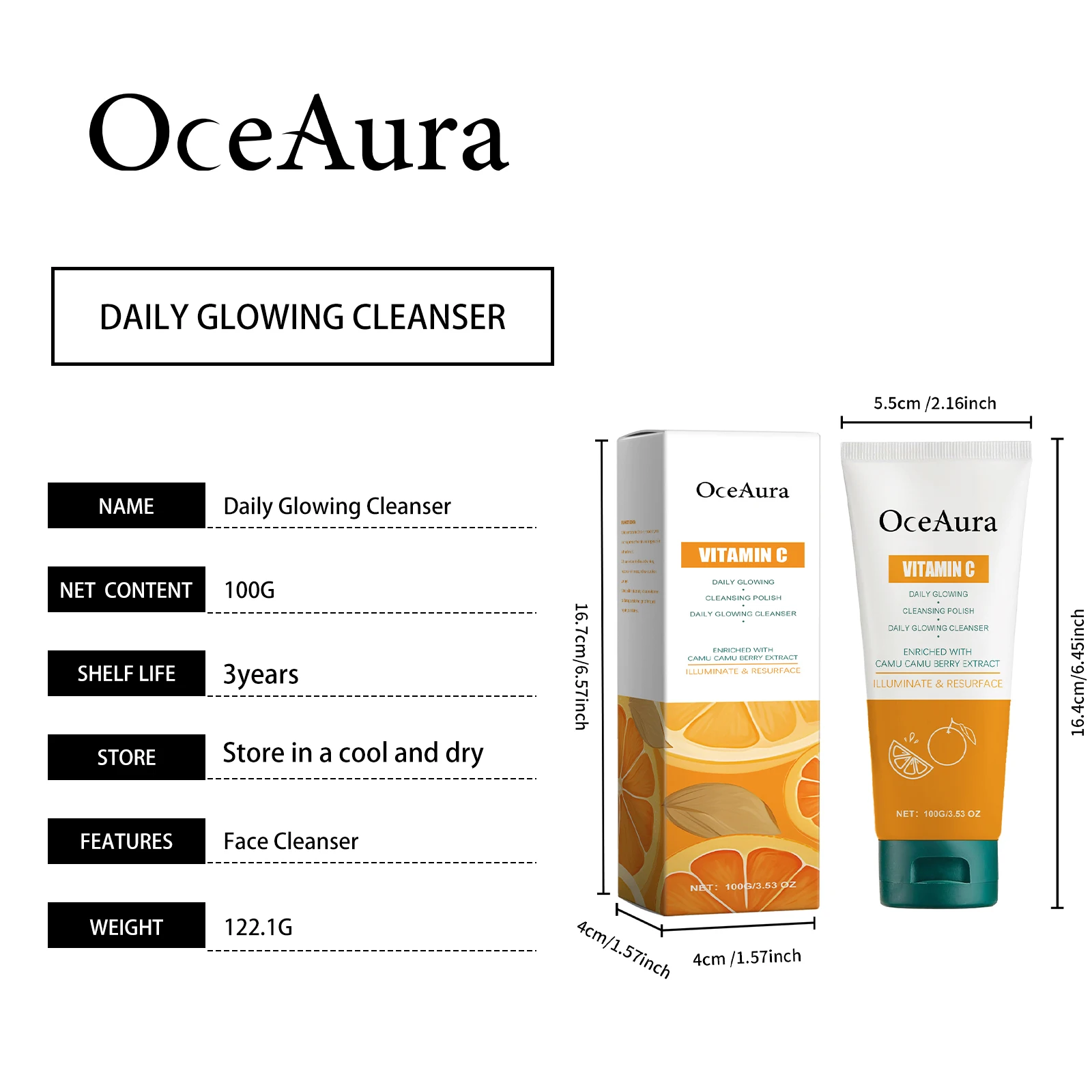 OCEAURA Vitamin C Exfoliating Facial Cleanser Prevent Pore Blockage Gently Remove Makeup Clean Face Dirt Moisturizing Facial Cleanser 100g