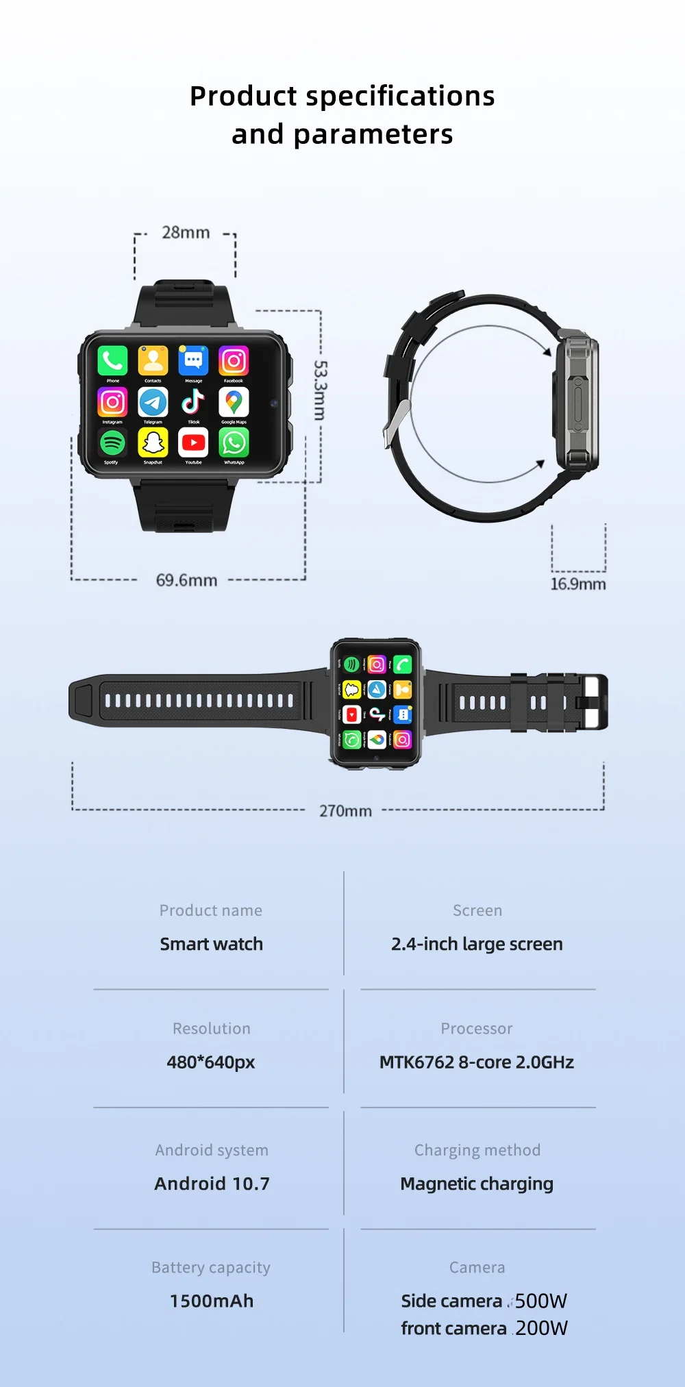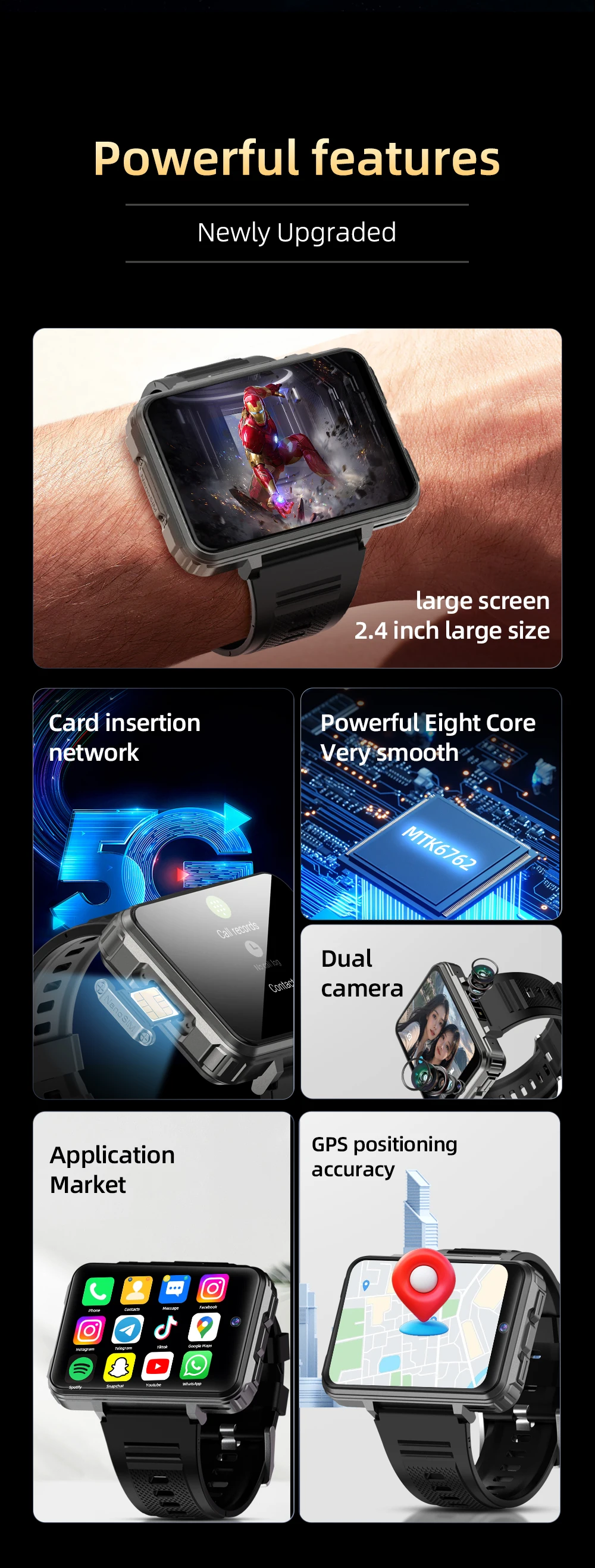 VP999 Ultra Large Screen Smart Watch 4G Dual Camera 64GB Face Recognition Unlock 1400mAh Maps 2.4 inch Touch Screen Smartwatch