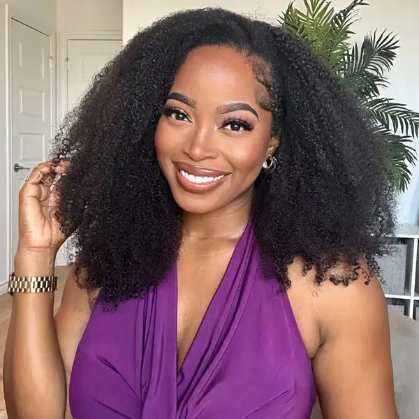 VSHOW 3 In 1 Half Wig with Drawstring Seamless Afro Kinky Curly Human Hair Wigs With Natural Hairline