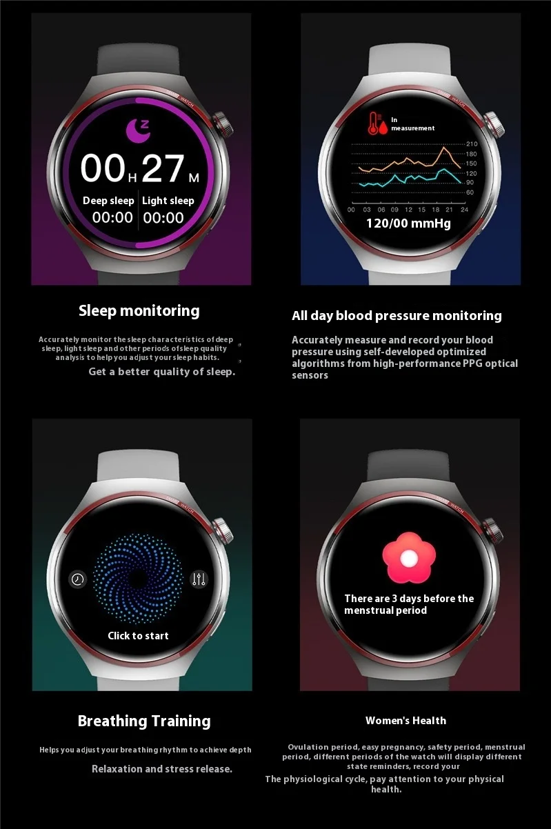 ➤Monitor de salud: frecuencia cardíaca, presión arterial, oxígeno en sangre y electrocardiograma.