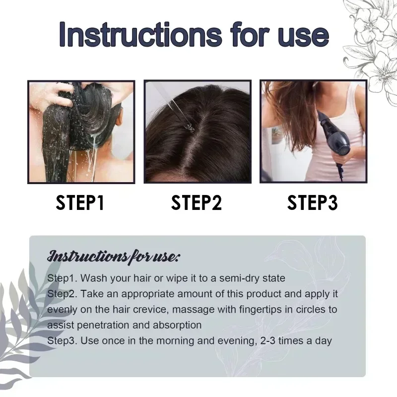 1. Aide à améliorer l'environnement du cuir chevelu, réveille les follicules pileux, complète la nutrition et rend les cheveux noirs.