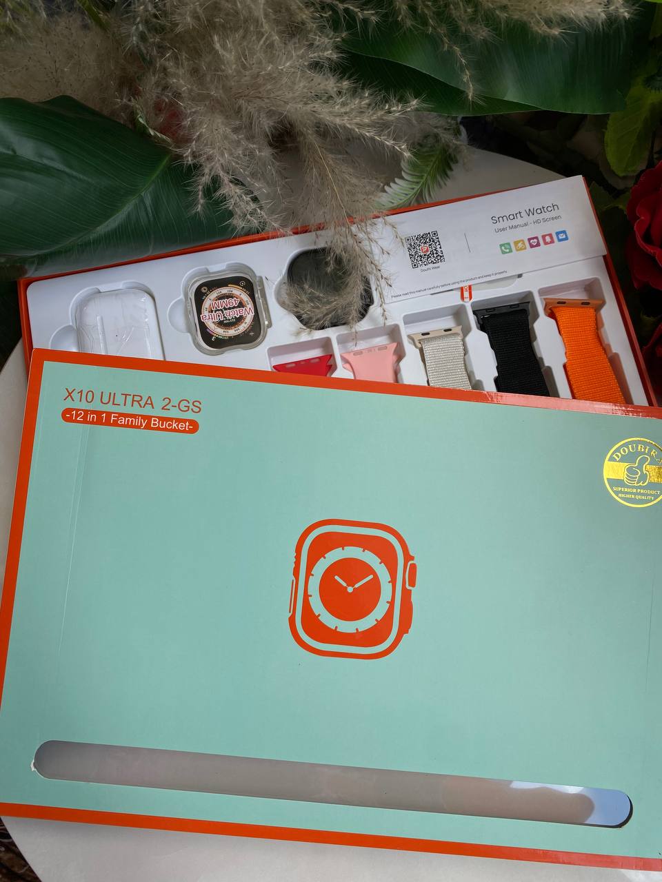 The X10 ULTRA 2-GS Smart Watch comes with eight interchangeable straps, earbuds, and a protective watch cover for a complete, versatile experience. Its advanced sports modes track running, mountaineering, jogging, walking, calories burned, steps, and rope skipping. Stay organized with message and app notifications, sleep monitoring, alarm and stopwatch functions, and heart rate tracking. The handy find phone feature ensures you never lose your device. Compatible with Android and iOS via an app activated by scanning the manual. Included earbuds offer Bluetooth connectivity, high-quality sound, and seamless call management, making this set perfect for active, connected lifestyles.