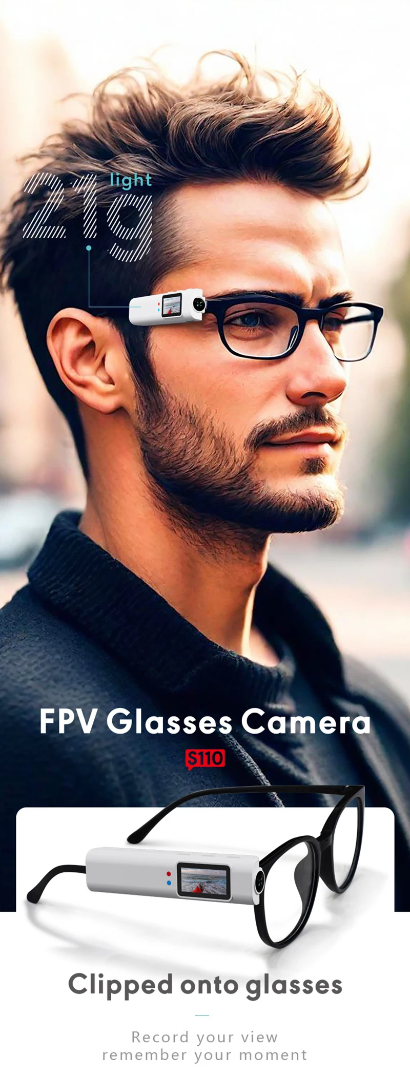 Xiaomi S110 FPV Eyeglasses Camera HD Video Shooting Micro-camera, 0.96'' IPS Screen 250mAh Battery WiFi APP Sound Recording