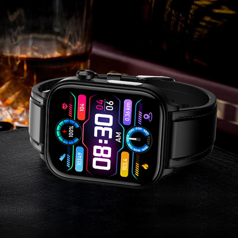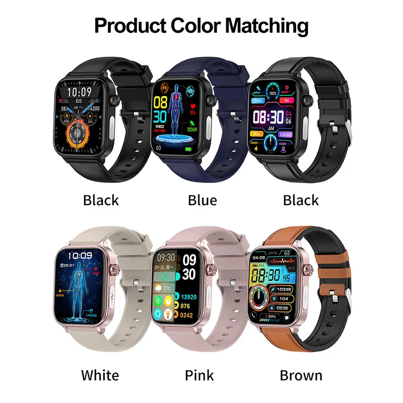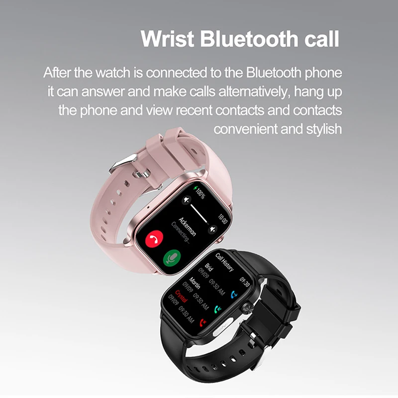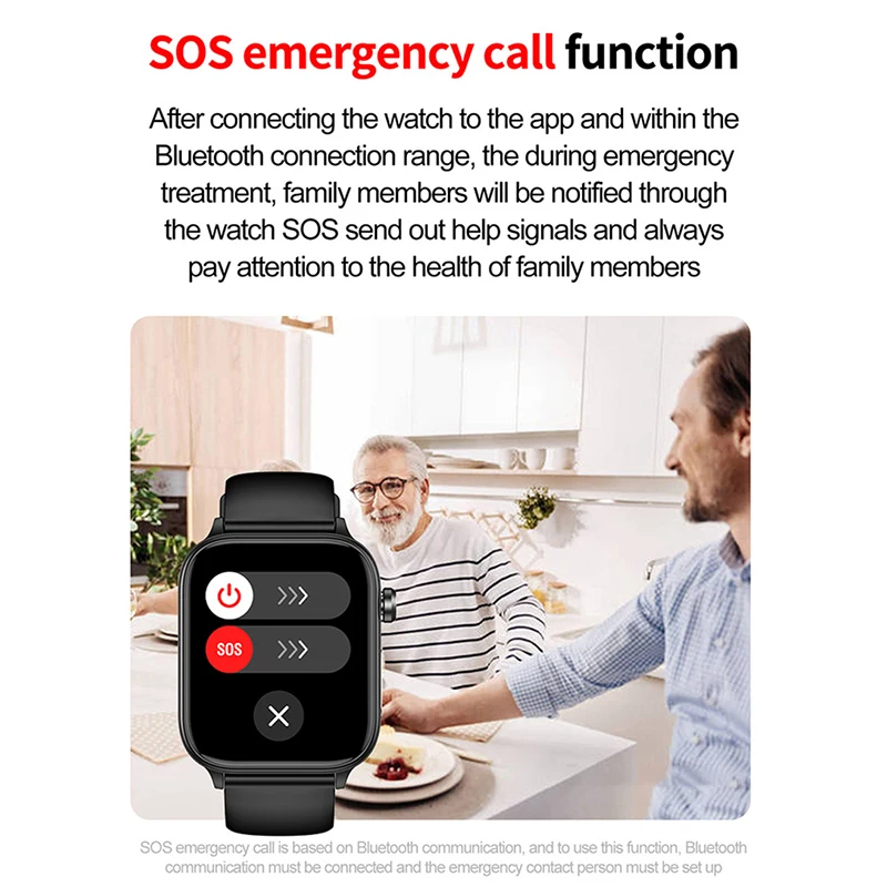 ★ Other Functions: Wireless call, SOS emergency call, intelligent voice assistant, call reminder, message notification, 100+ sports modes, step count, calories, distance, weather forecast, alarm clock, raise hand to turn on the screen, shake to take photo, music control, stopwatch, flashlight, countdown, calculator, game, social sharing (WeChat, QQ, Facebook, Twitter, etc).