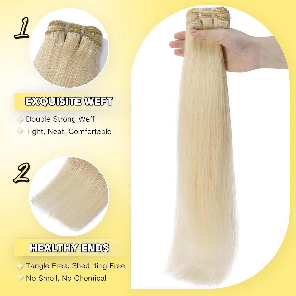 Yelo Highlight Blonde Human Hair Weft Double Weft Hair Bundles Sewing In Hair Weaves Real Human Hair Extension For Salon