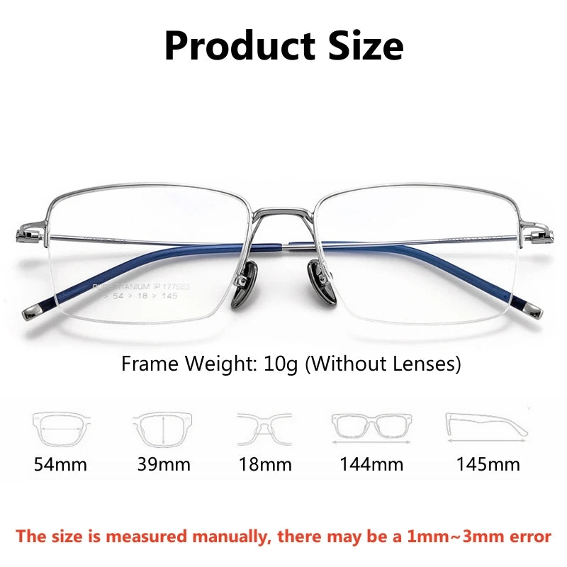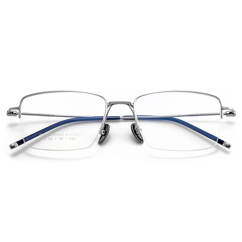 YIMARUILI Business Pure Titanium Men's Half-Frame Glasses Ultra-Light Flexible Square Optical Prescription Eyeglasses Frame 1775