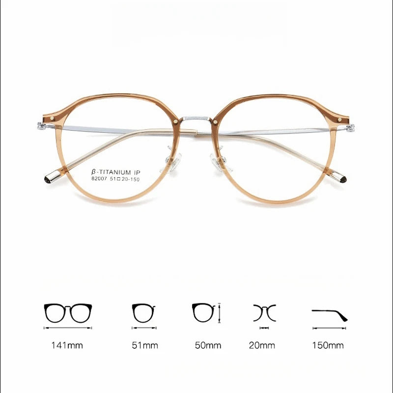 YIMARUILI New Retro Round Women's Glasses Ultralight Titanium Alloy Fashion TR90 Optical Prescription Eyeglasses Frame Men 82007